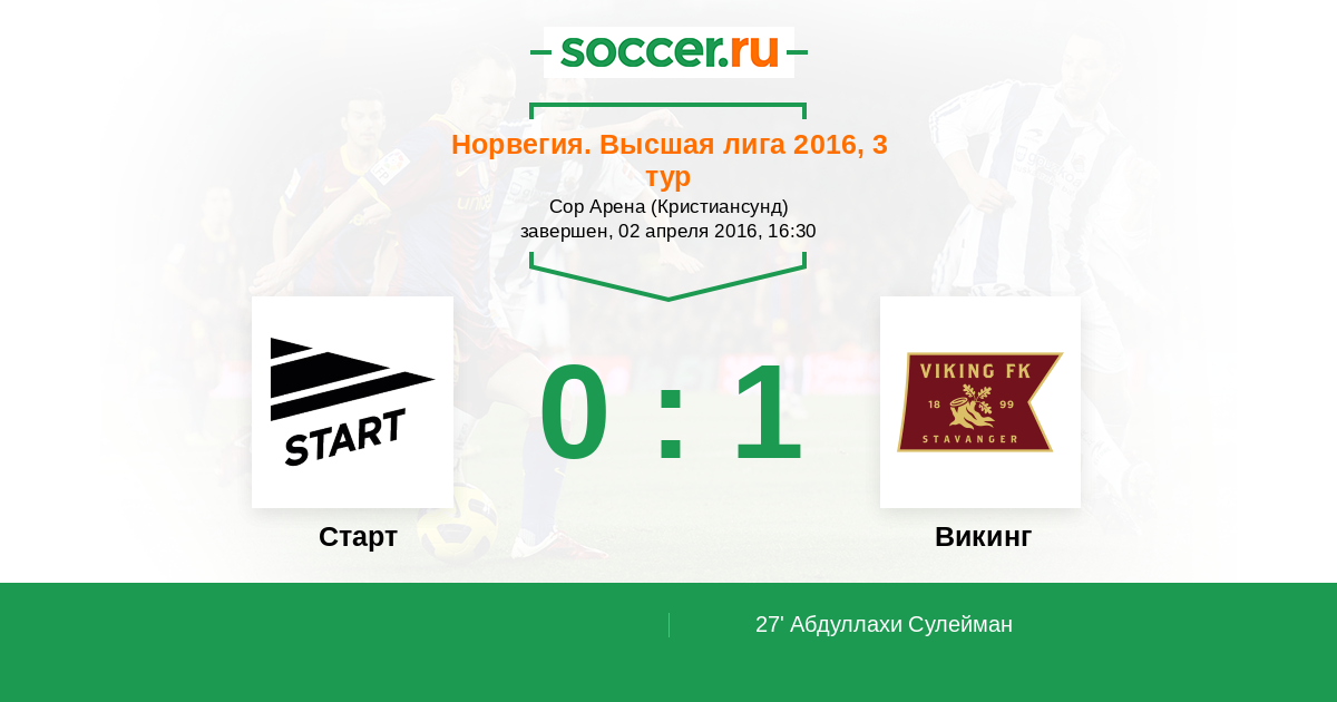 27' (0:1) Абдуллахи Сулейман (8) (Андре Даниэльсен (14))