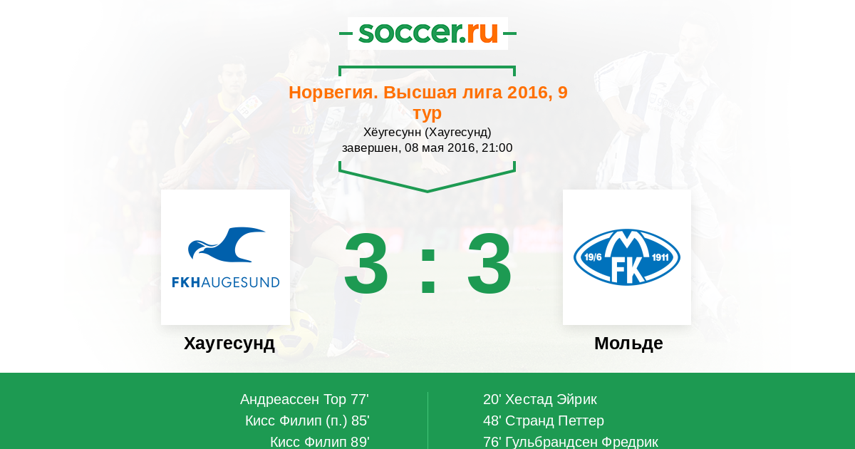 20' (0:1) Хестад Эйрик (19) (Странд Петтер (14))