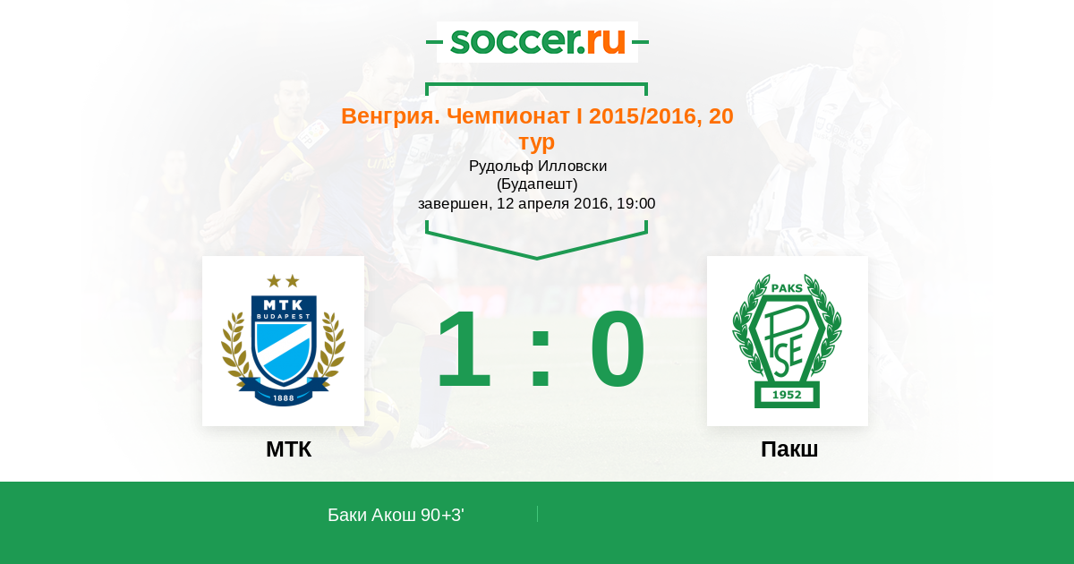 Гол90+3' (1:0) Баки Акош (4)