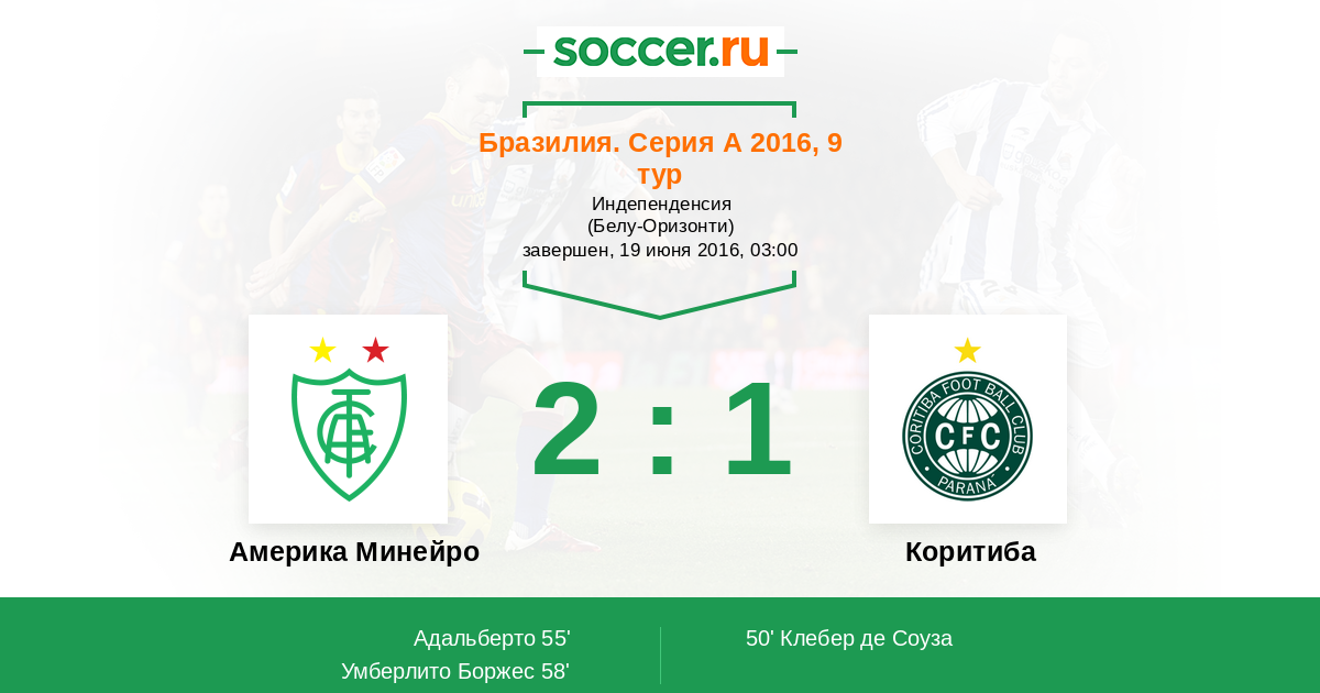 58' (2:1) Умберлито Боржес (9) (Адальберто (4))