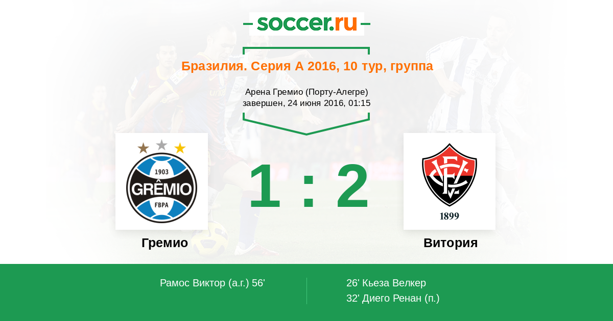 32’ 0:2(П) Диего Ренан