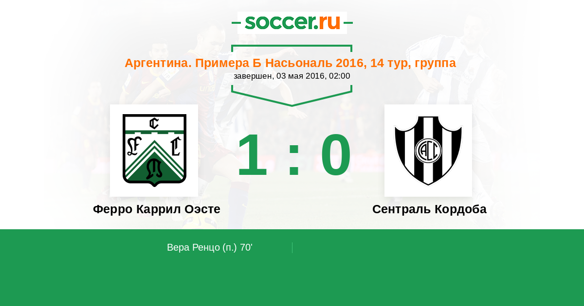 Вера Ренцо 1:0(П) 70’