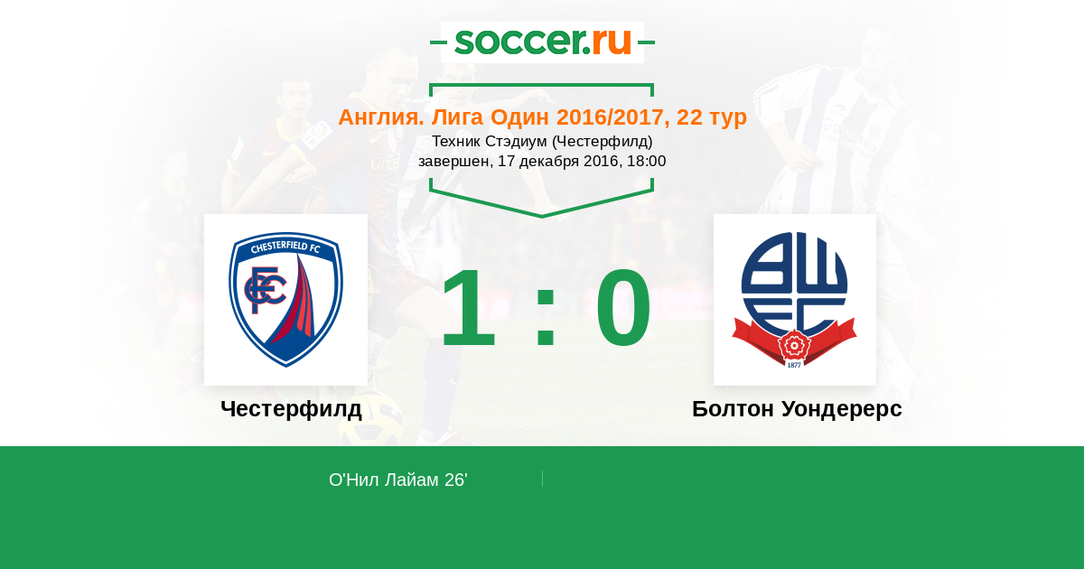 26' (1:0) О'Нил Лайам (15) (Арийиби Гболи (28))