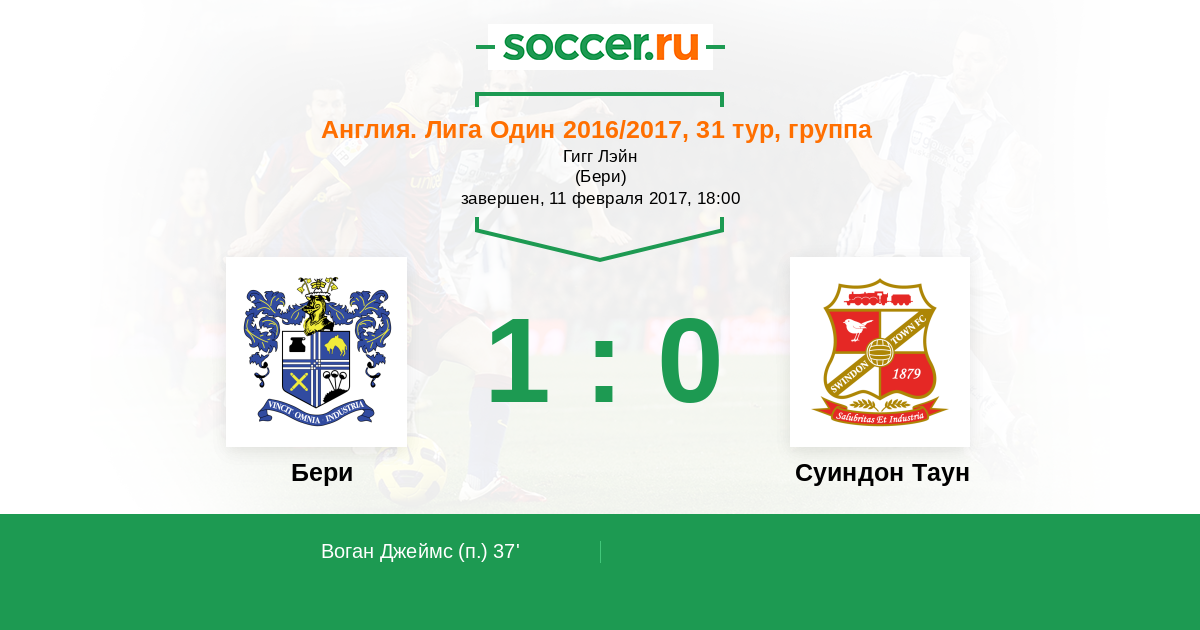 Воган Джеймс 1:0(П) 37’