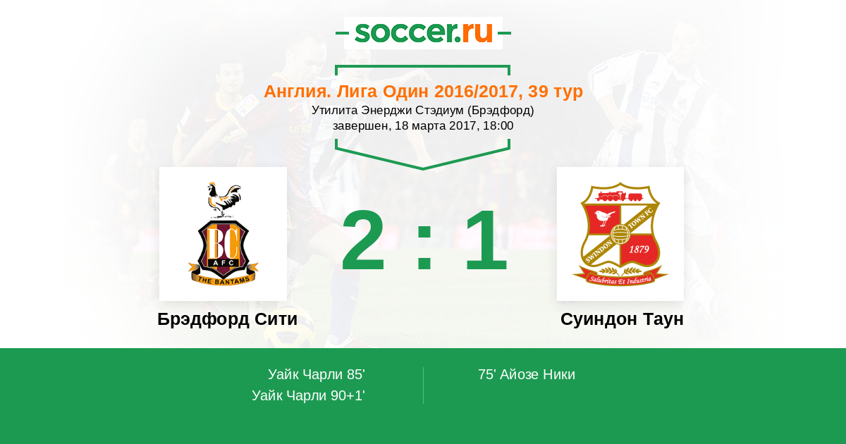 Гол90+1' (2:1) Уайк Чарли (9)