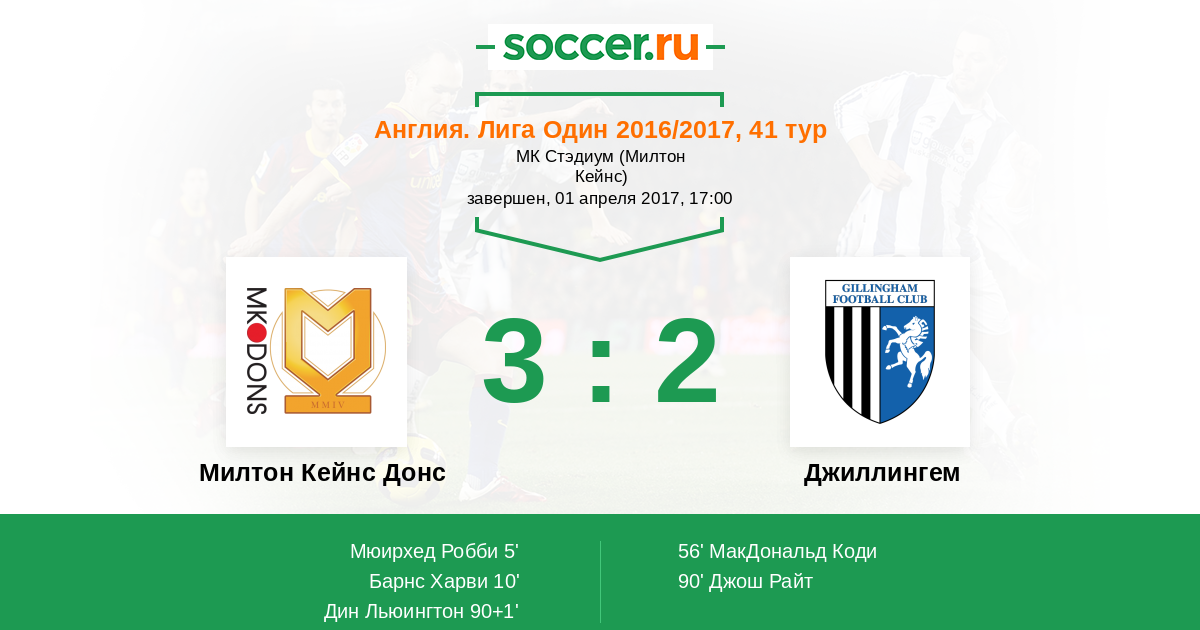 Гол90+1' (3:2) Дин Льюингтон (3) (Ривс Бен (10))