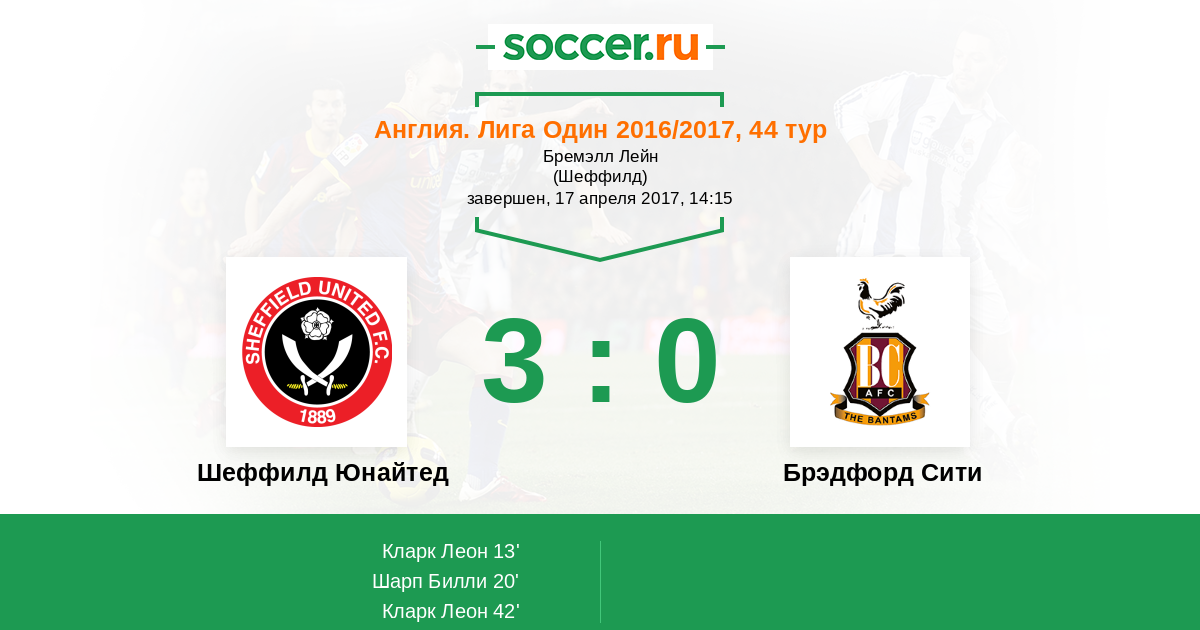 42' (3:0) Кларк Леон (27) (Шарп Билли (10))