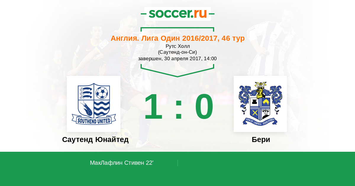 22' (1:0) МакЛафлин Стивен (11)