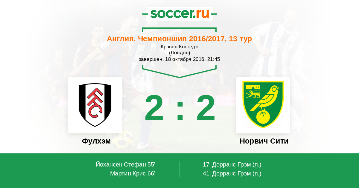 66' (2:2) Мартин Крис (25) (Йохансен Стефан (14))