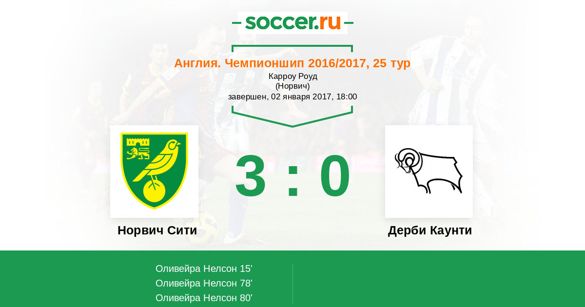 15' (1:0) Оливейра Нелсон (9) (Мерфи Джейкоб (22))