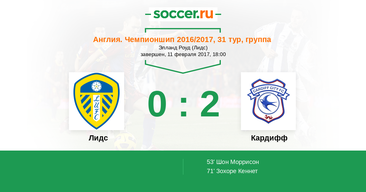 53' (0:1) Шон Моррисон (4) (Нун Крэйг (11))