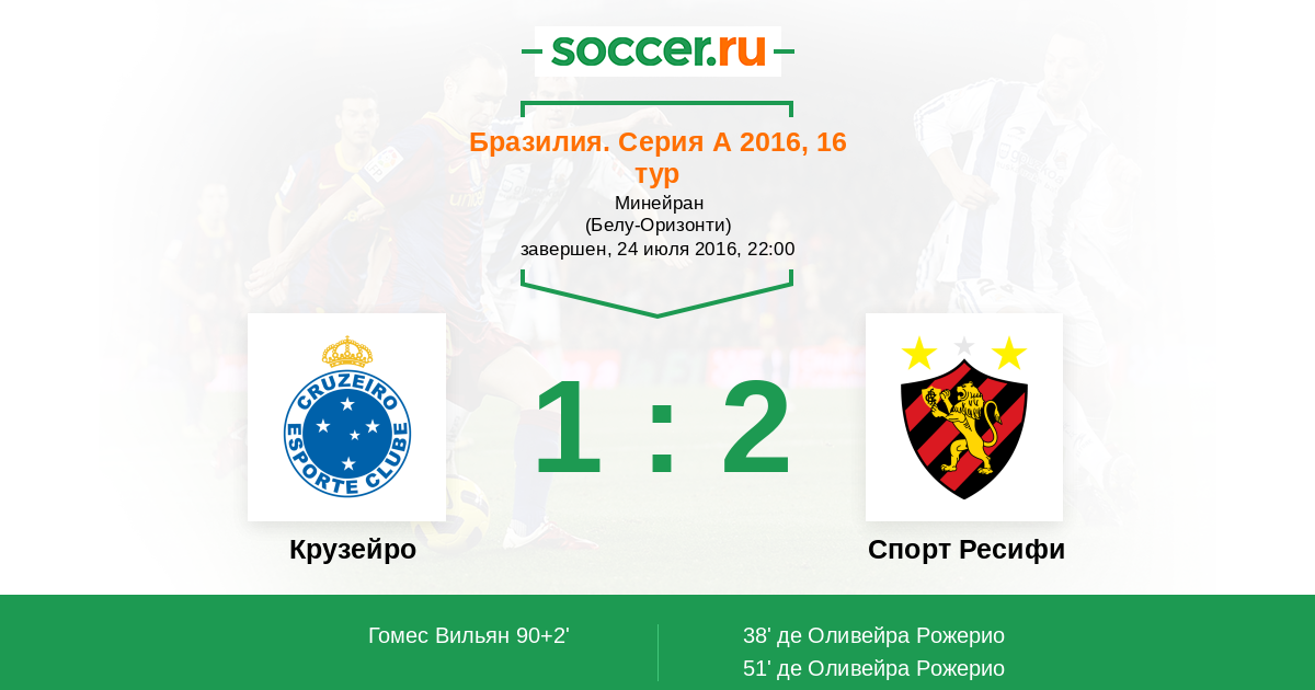 51' (0:2) де Оливейра Рожерио (90) (Фелипе Эвертон (97))