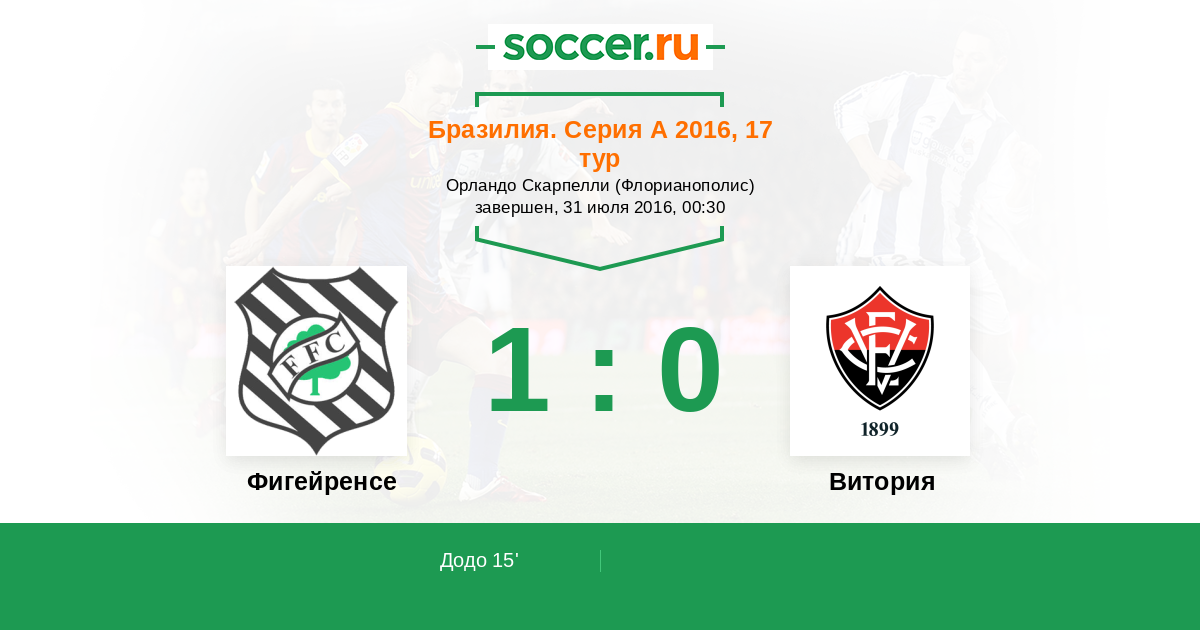 15' (1:0) Додо (7) (Карлос Альберто (19))