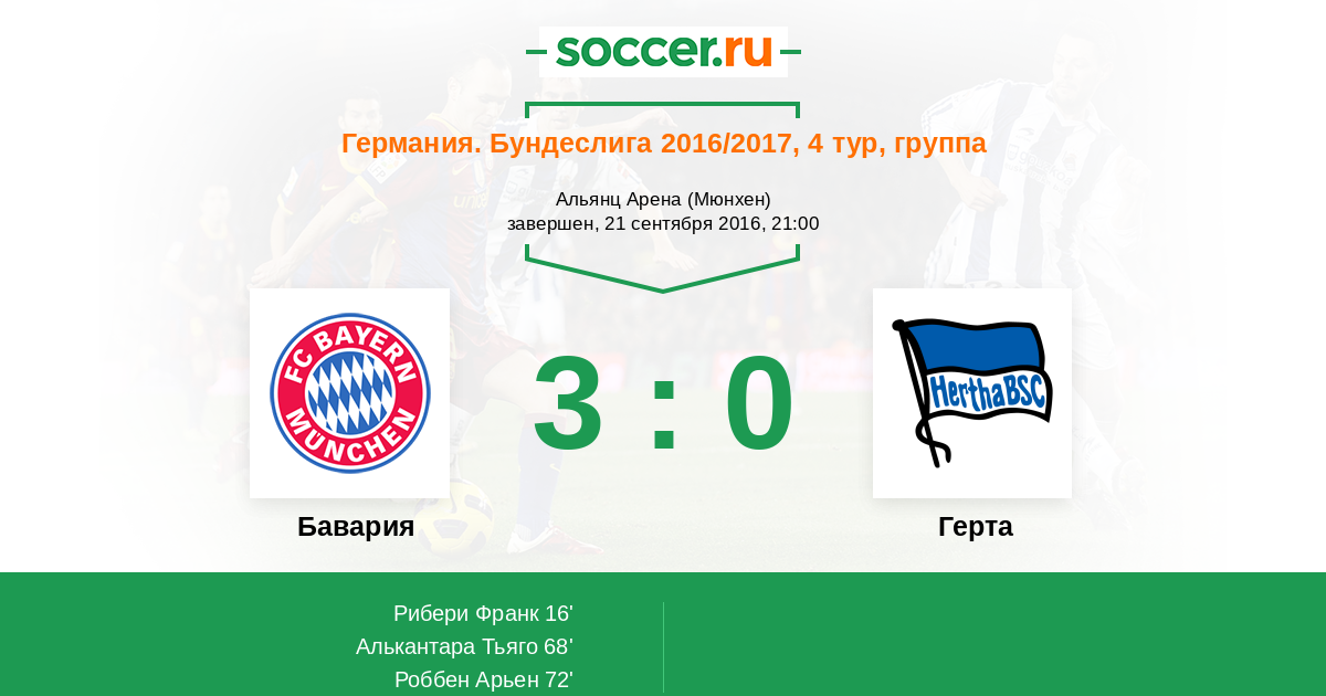 72' (3:0) Роббен Арьен (10) (Алькантара Тьяго (6))