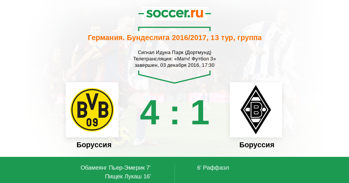 68' (4:1) Обамеянг Пьер-Эмерик (17) (Ройс Марко (11))