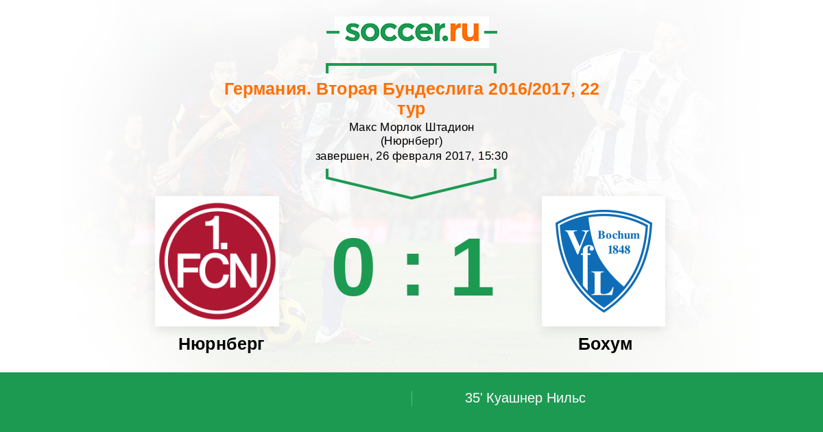 35' (0:1) Куашнер Нильс (36) (Гьямера Ян (18))