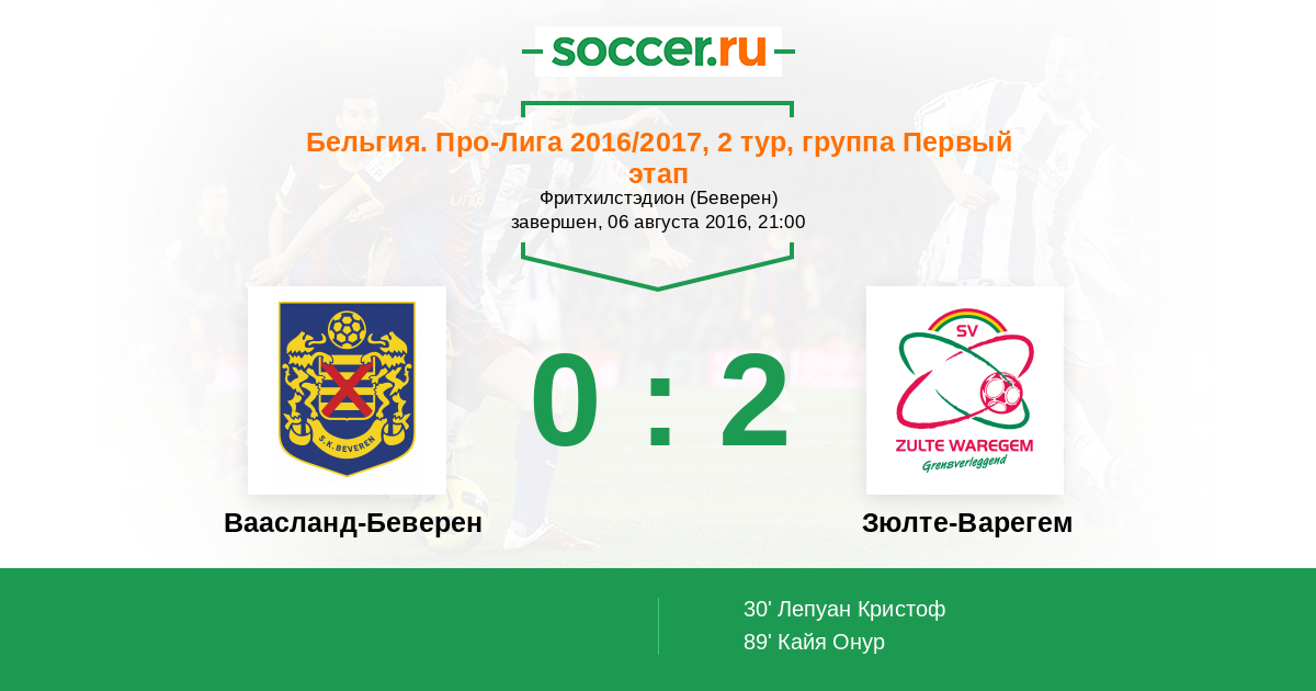 30' (0:1) Лепуан Кристоф (23) (Де Фаув Дэви (2))