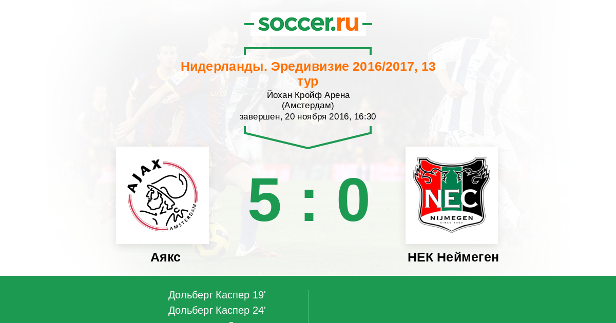 24' (2:0) Дольберг Каспер (25) (Классен Дэви (10))