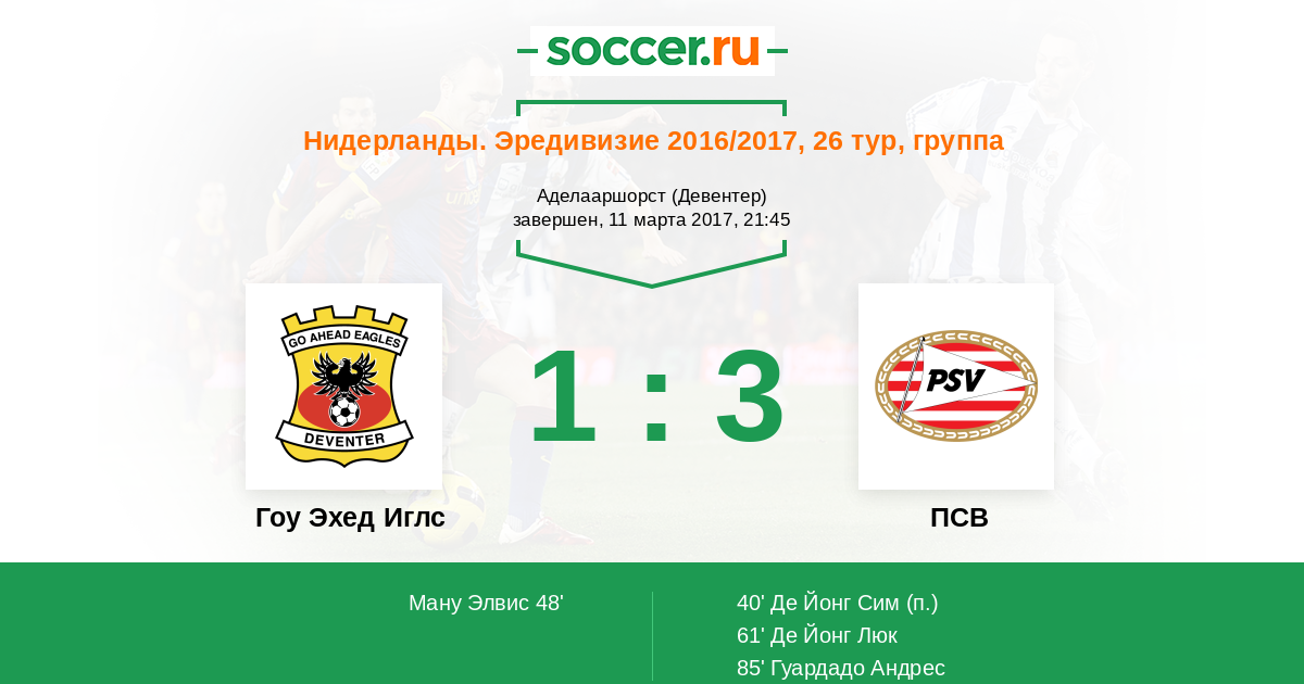 Матчи Нидерланды. Эредивизи 2016/2017