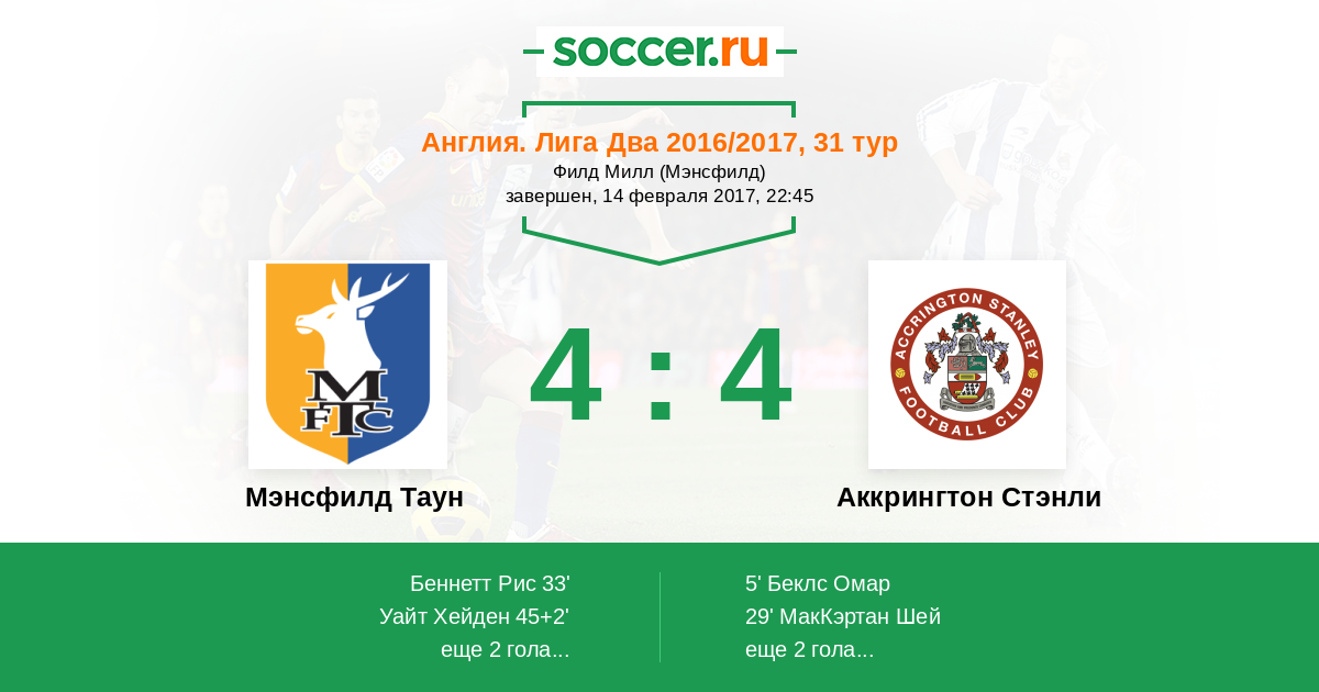 33' (1:2) Беннетт Рис (2) (Байром Джоэл (26))