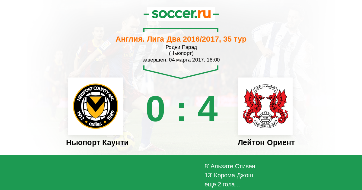 13' (0:2) Корома Джош (28) (Далби Сэм (30))
