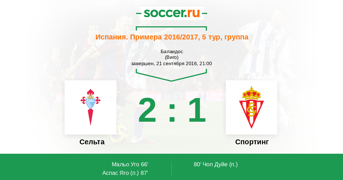 Аспас Яго 2:1(П) 87’