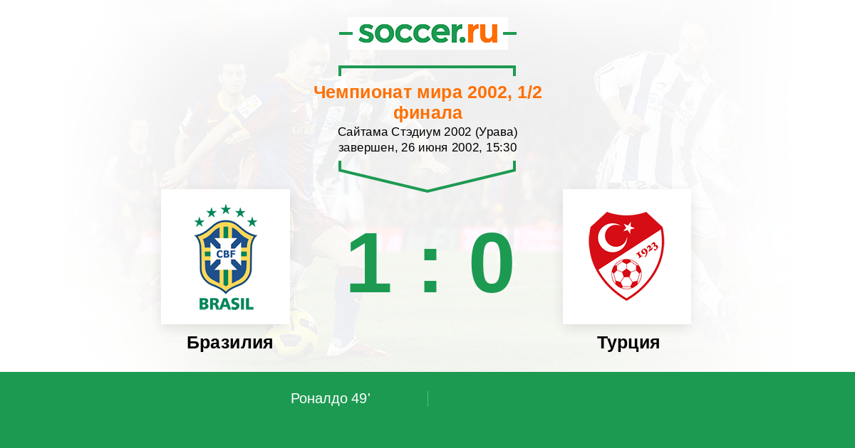 49' (1:0) Роналдо (9) (Жилберто Силва (8))