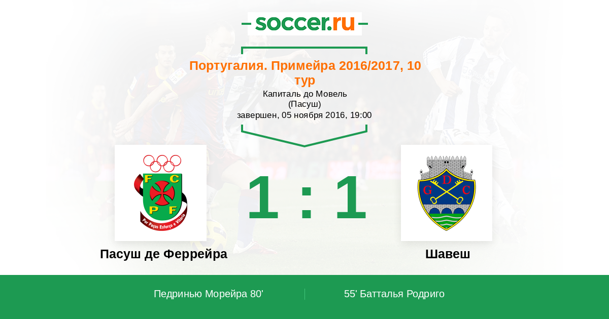 55' (0:1) Батталья Родриго (16) (Мартинш Фабиу (47))