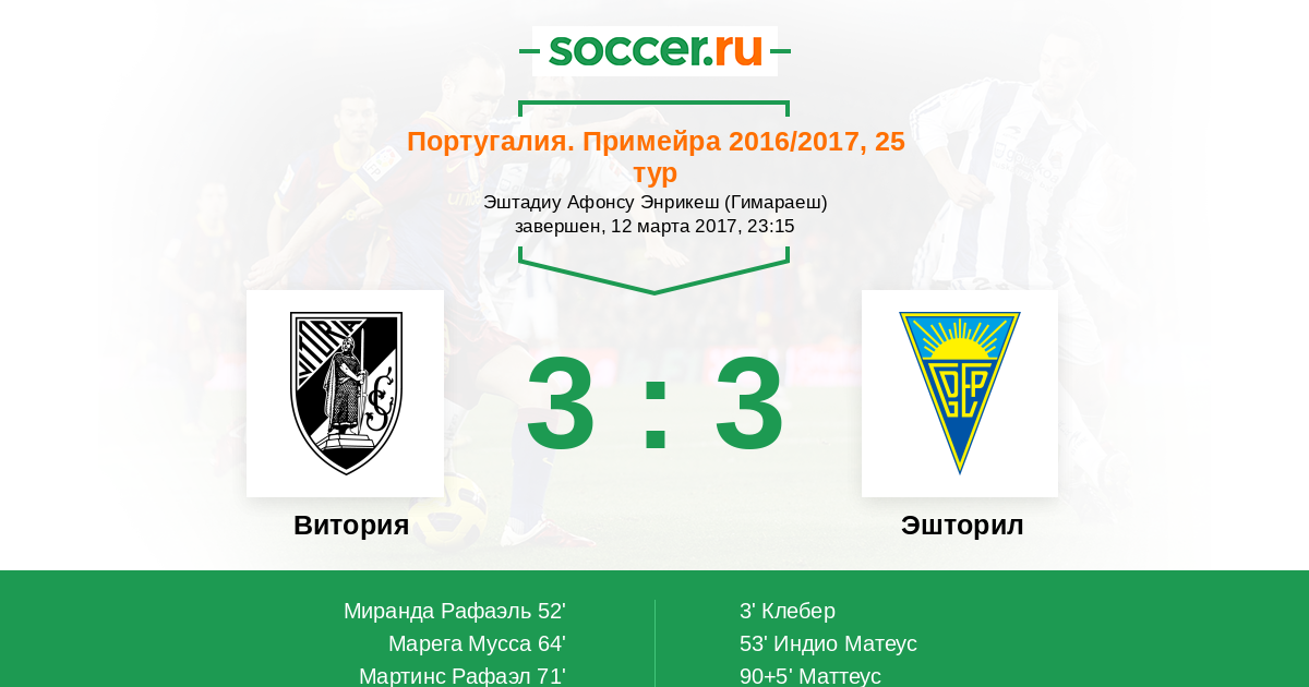 Гол90+5' (3:3) Маттеус (27) (Аллано (95))