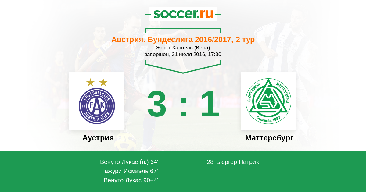 28' (0:1) Бюргер Патрик (33) (Хёллер Алоис (8))