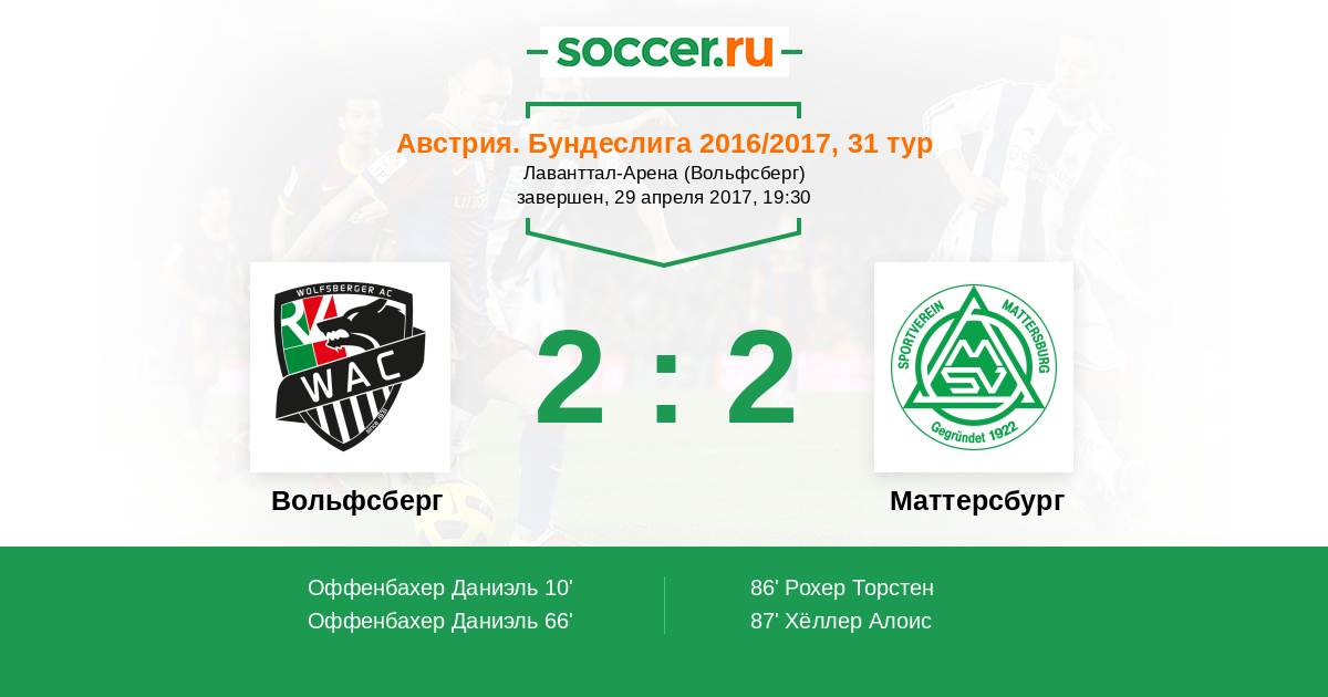 66' (2:0) Оффенбахер Даниэль (10) (Клем Кристиан (21))