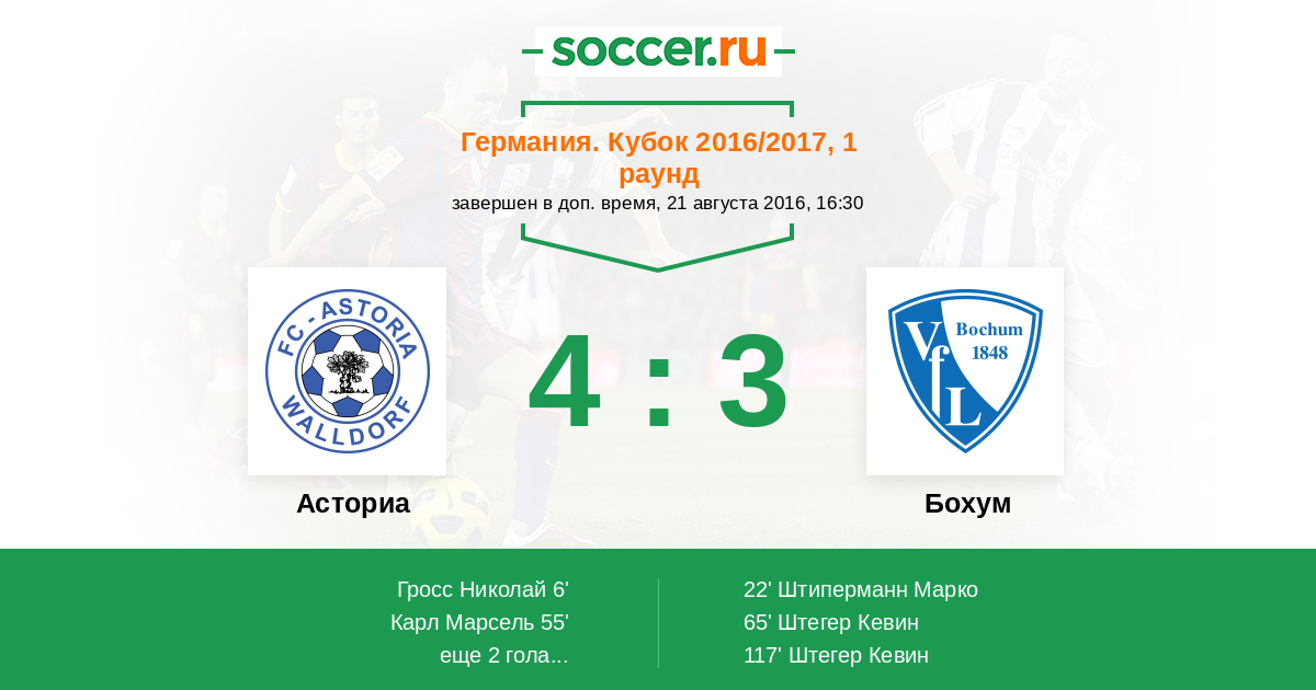 Гол117' (4:3) Штегер Кевин (22) (Вурц Йоханнес (9))