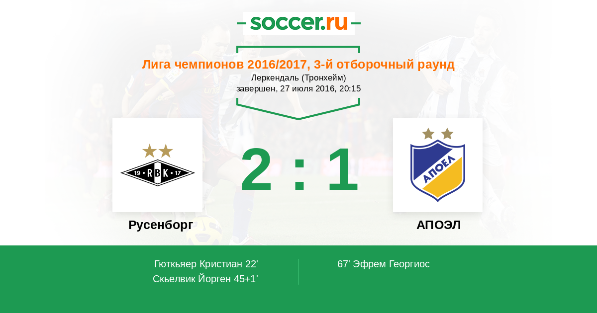 22' (1:0) Гюткьяер Кристиан (9) (Скьелвик Йорген (16))