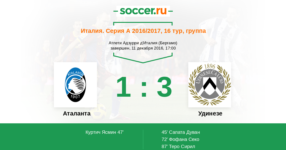 45' (0:1) Сапата Дуван (9) (Теро Сирил (77))