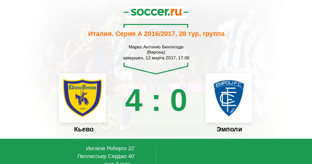 22' (1:0) Инглезе Роберто (45) (Каччаторе Фабрицио (29))