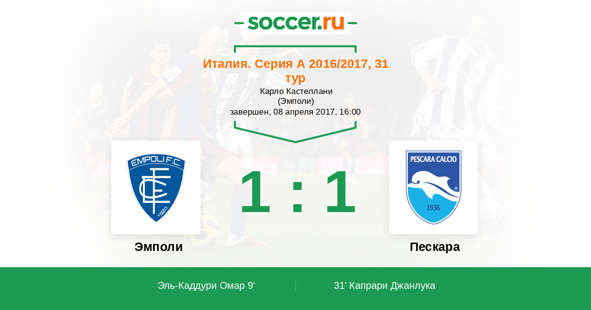 31' (1:1) Капрари Джанлука (17) (Баэбек Жан-Кристоф (15))