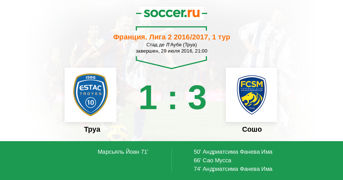 66' (0:2) Сао Мусса (10) (Тардье Флориан (22))