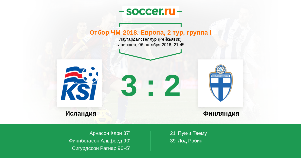 Гол90+5' (3:2) Сигурдссон Рагнар (6) (Арнасон Кари (14))