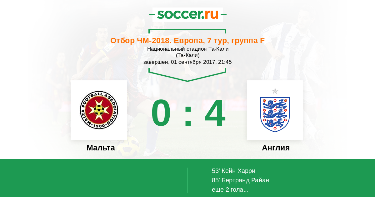 Гол90+2' (0:4) Кейн Харри (9) (Рэшфорд Маркус (22))