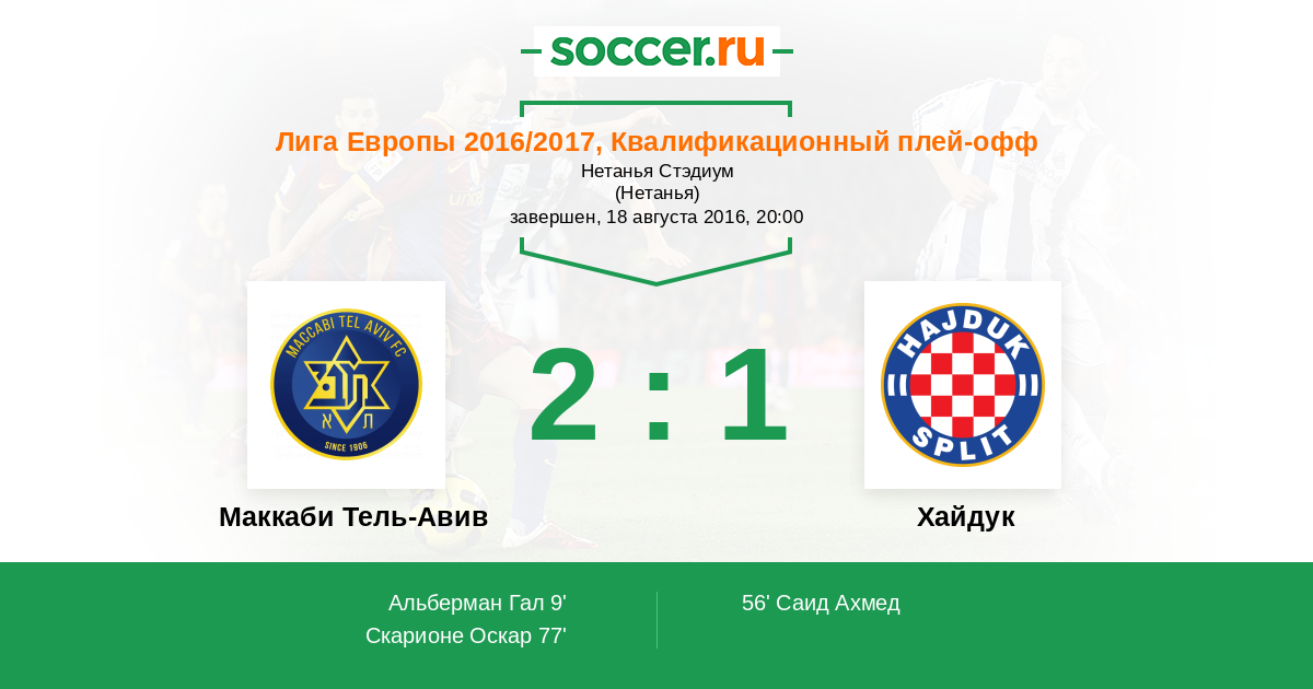 77' (2:1) Скарионе Оскар (5) (Бен-Хаим Таль (11))