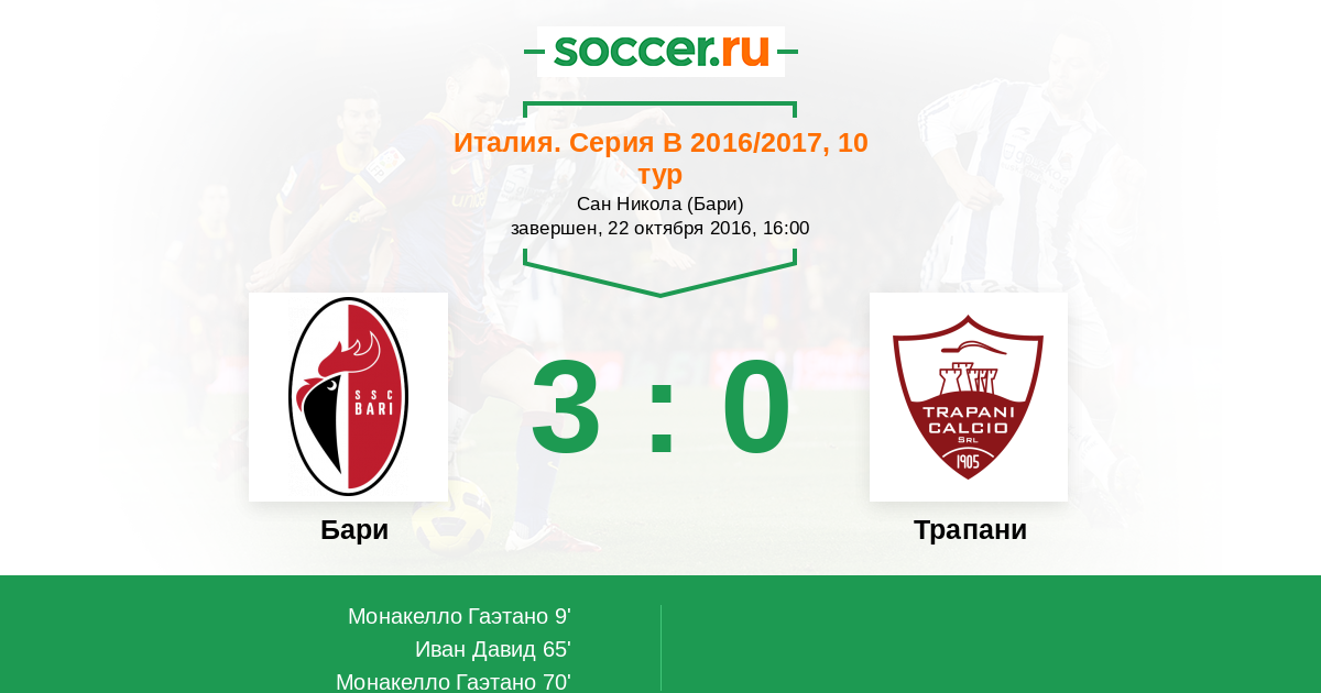 9' (1:0) Монакелло Гаэтано (9) (Сабелли Стефано (23))