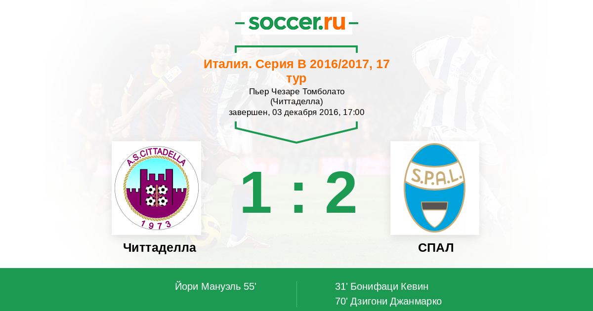 31' (0:1) Бонифаци Кевин (14) (Бегетто Андреа (13))