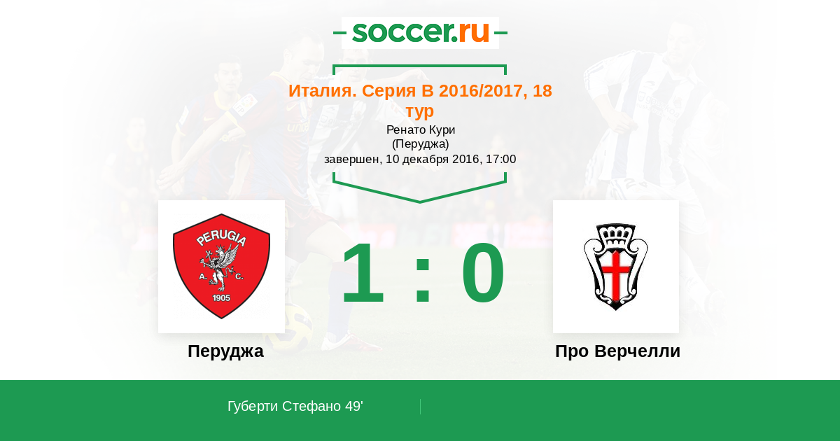 49' (1:0) Губерти Стефано (7) (Бельмонте Никола (17))