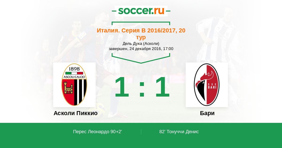 82' (0:1) Тонуччи Денис (5) (Бриенца Франческо (20))