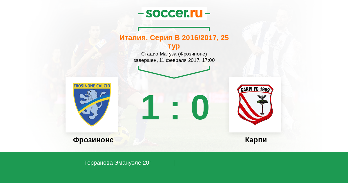 20' (1:0) Терранова Эмануэле (26) (Соддимо Данило (10))