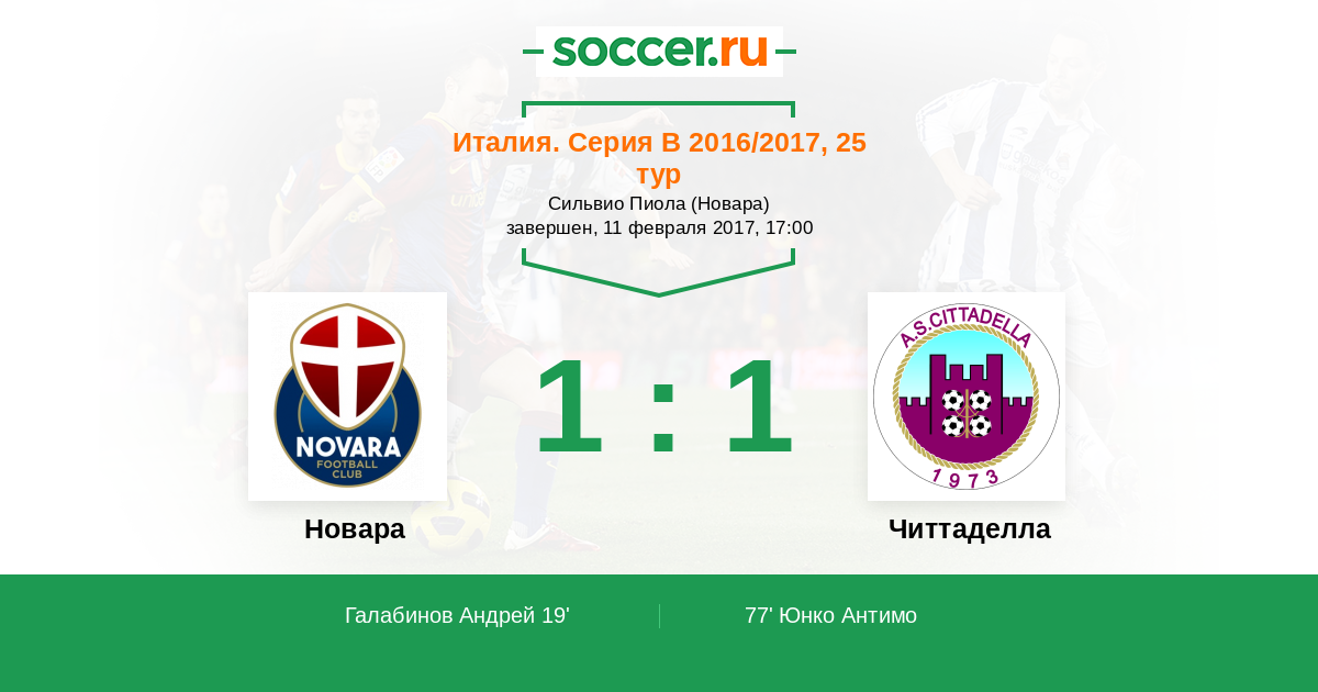 19' (1:0) Галабинов Андрей (16) (Сансоне Джанлука (18))