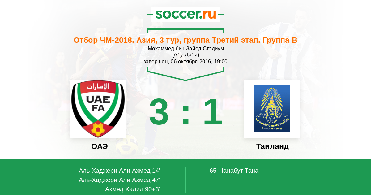 47' (2:0) Аль-Хаджери Али Ахмед (7) (Абдулрахман Омар (10))