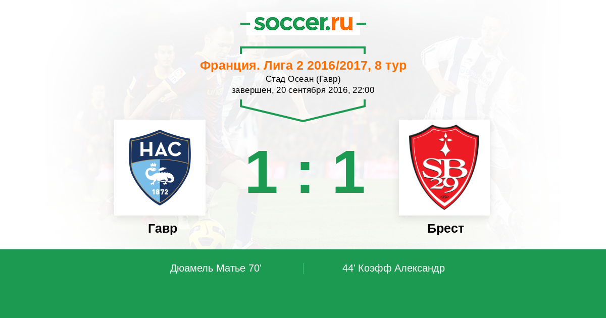 70' (1:1) Дюамель Матье (10) (Саль-Ламонге Себастьен (19))