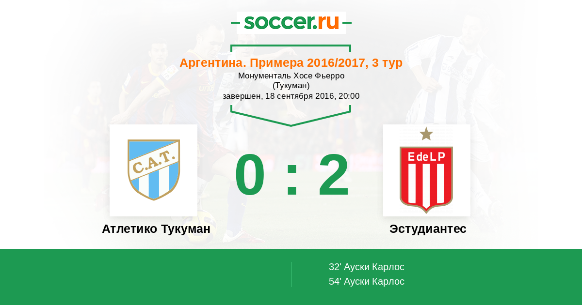 32' (0:1) Ауски Карлос (7) (Родригес Лукас (10))