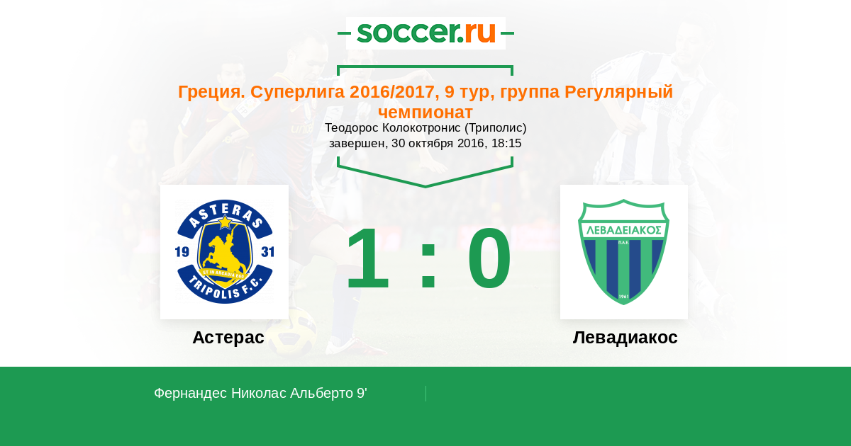 9' (1:0) Фернандес Николас Альберто (11) (Калцас Николаос (23))